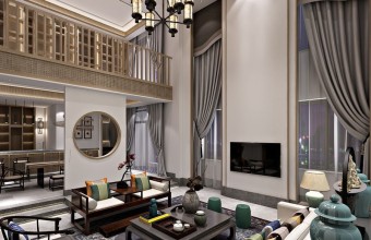 旭辉江湾墅别墅装修新中式风格设计-设计效果图