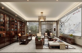 保亿风景水岸550平别墅新中式风格设计-设计效果图