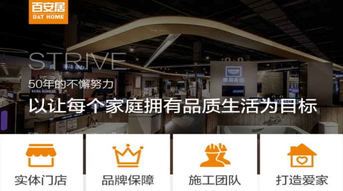 百安居源自欧洲,是欧洲最大的大型国际装饰建材零售商。自1999年登陆中国以来,通过深入了解国内消费需求,制定全新的战略规划,开创了“一站式”整体家装服务之先河。多年来百安居致力于成为领先中国市场、定位大众百姓、提供一站式的家装产品和室内装潢装修服务的零售商。目前,它的建材零售超市提供有15大类2万多种优质建材,其中包括超过2600种来自欧洲的专售品牌商品。装修设计中心则采用“超市自选材料+专业设计+现场施工”的模式,并以精湛工艺、严密质检、透明消费及周到的售后服务著称。经历了快速成长的百安居,凭借其先进的管理经验和质量监督体系,目前已成为国内建材连锁超市的著名品牌,并且在北京、上海、深圳、广州等全国大中型城市设立了数十家门店。在互联网的大潮中,2015年11月百安居中国携其强大的自营实体店优势,与天猫展开战略合作,强强联手强势进入互联网家装领域,开拓“线上与线下相结合,产品与服务相结合”的全渠道O2O模式。