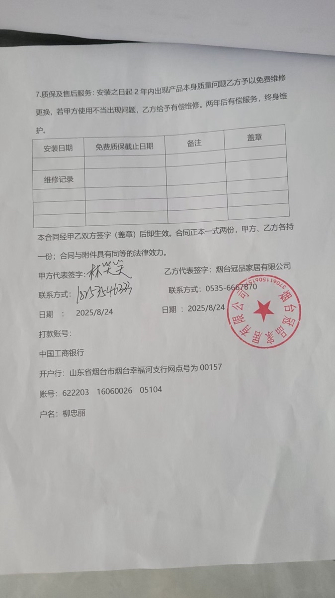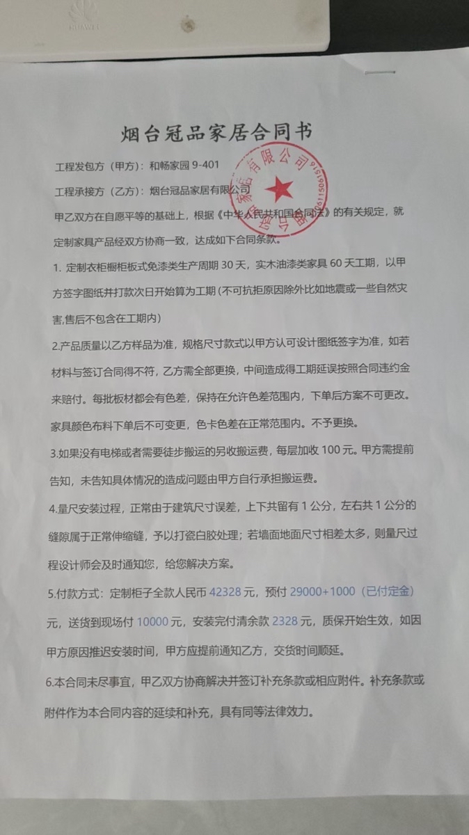 尊敬的业主您好!您投诉的烟台冠品家居,该企业非网络监督单位,您的投诉已受理请耐心等待!望企业引起重视,注重企业形象,维护企业口碑。如您需要申请行业监理委员会第三方监理介入调解,请拨打投诉热线400-118-8580。 双方如需了解详情,装饰公司请加投诉中心雷老师微信(微信号13501886065),投诉业主维权请加王老师微信(微信号13311711185),便于查询后续的进展。 树立行业文明,建立公正权威,感谢您对上海装潢网的信赖!