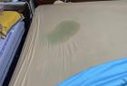 野蛮施工造成将防漏液渗漏至楼下住户,导致被单,枕头,被子,床垫都被染上蓝色液体严重影响正常生活。