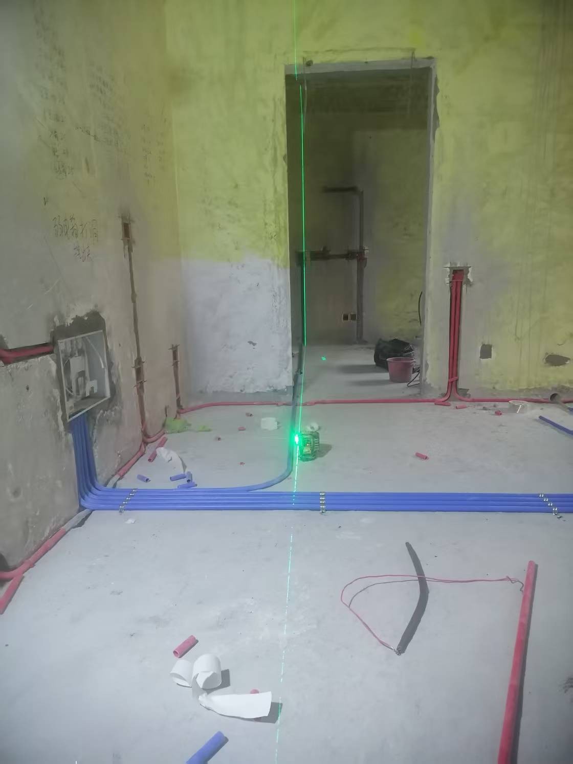开启水电阶段。居丽工程队开槽横平竖直,现场干净整洁。其实开槽这项工作现场灰尘非常大,每次开槽完毕都会清理干净现场,小细节体现出师傅认真负责的工作态度。 交底–开槽–安装底盒–做线管水管–穿线–打压验收–粉槽 每一个步骤都要一步一个脚印。 中国有句古话:磨刀不误砍柴工。做好每一项最基本的工作,才能让后续的工程越做越好!
