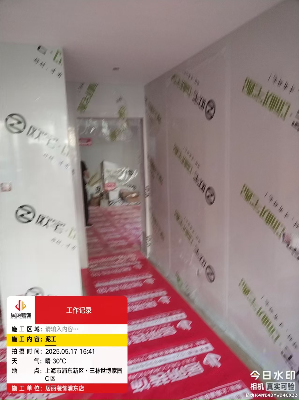 业主周小姐的装修工地已成功创建,施工企业为上海居丽建筑装潢工程有限公司,播报须知:为了评比最美工地,所有施工人员须参与到播报中,播报图片要求清晰,并附加文字说明,让装修小白也能一目了然,积极播报,更好的体现工艺的专业性,取得业主的好评是我们服务的目标,每个阶段不得少于两次播报,装潢网巡视员会对工地和播报进行审核,如有疑问请拨打:400-118-8580
