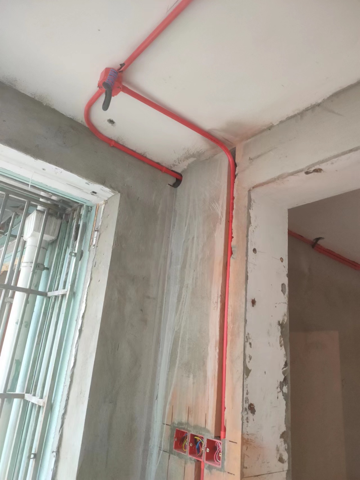 强弱电线管平行距离分开30公分以上,线管交叉无干扰,强弱电暗盒之间可紧靠,线槽横平竖直。暗线敷设配管,顶面铺暗管用黄腊管,强弱电不穿入同一根管内。强电穿线面积控制在线管面积的40%以内。电线管内没有接头,在水电完工后,所有开关、插座的明露线头必须用绝缘胶布包好,避免了发生触电危险。安装电源插座时,左零右相(火),上方为地线。火线进开关,零线进灯头。同一室内的电源、电话、电视等插座面板在同一水平标高上,高差小于5mm。电源插座距地面为300mm,开关距地面为1400mm电线管、热水管、煤气管相互间保持一定距离,无紧靠。冷热水管应左热右冷,热熔连接PPR进水管丝口连接进水管必须走顶面。